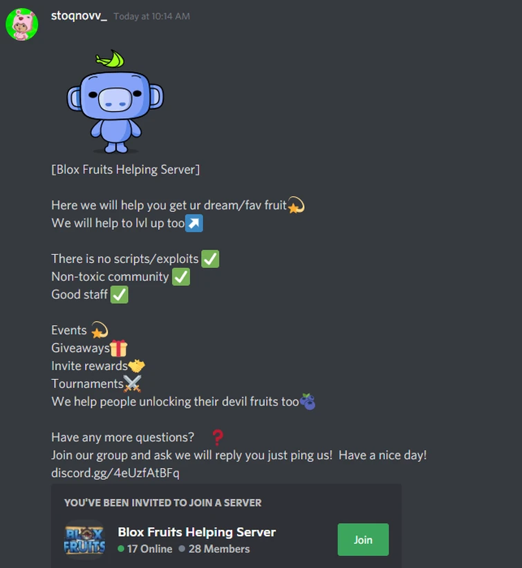 By using your Coins you can help this server become even more popular. Join Blox Fruits Stock 20 to get notified of the in-game stock of the popular Roblox game Blox Fruits every 4 hours. Totally Normal Gaming Discord.